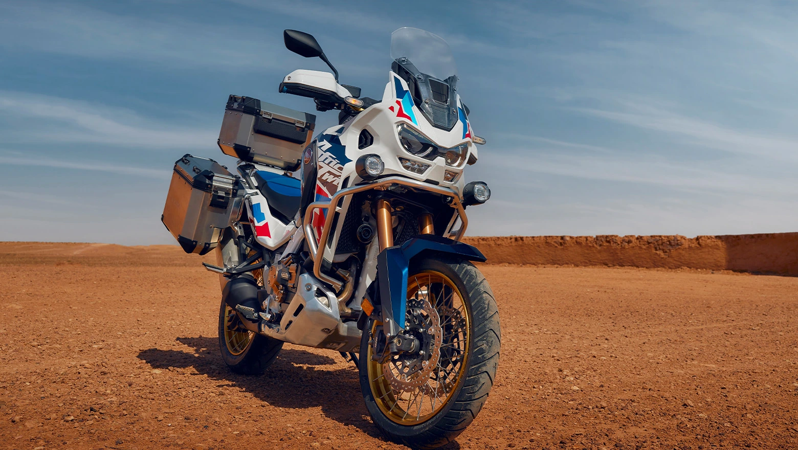 Projetada para a máxima performance em qualquer terreno, a nova CRF 1100L Afria Twin é equipada com novas rodas raiadas de aro 21“ na dianteira e 18″ na traseira, além dos novos pneus on-off para maior capacidade dentro e fora da estrada.