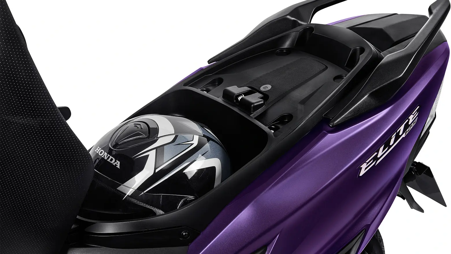 Com capacidade de 15,2 litros, o porta-objeto central da Elite 125 agora possui uma maior capacidade volumétrica, permitindo acomodar com tranquilidade um capacete aberto, proporcionando comodidade.