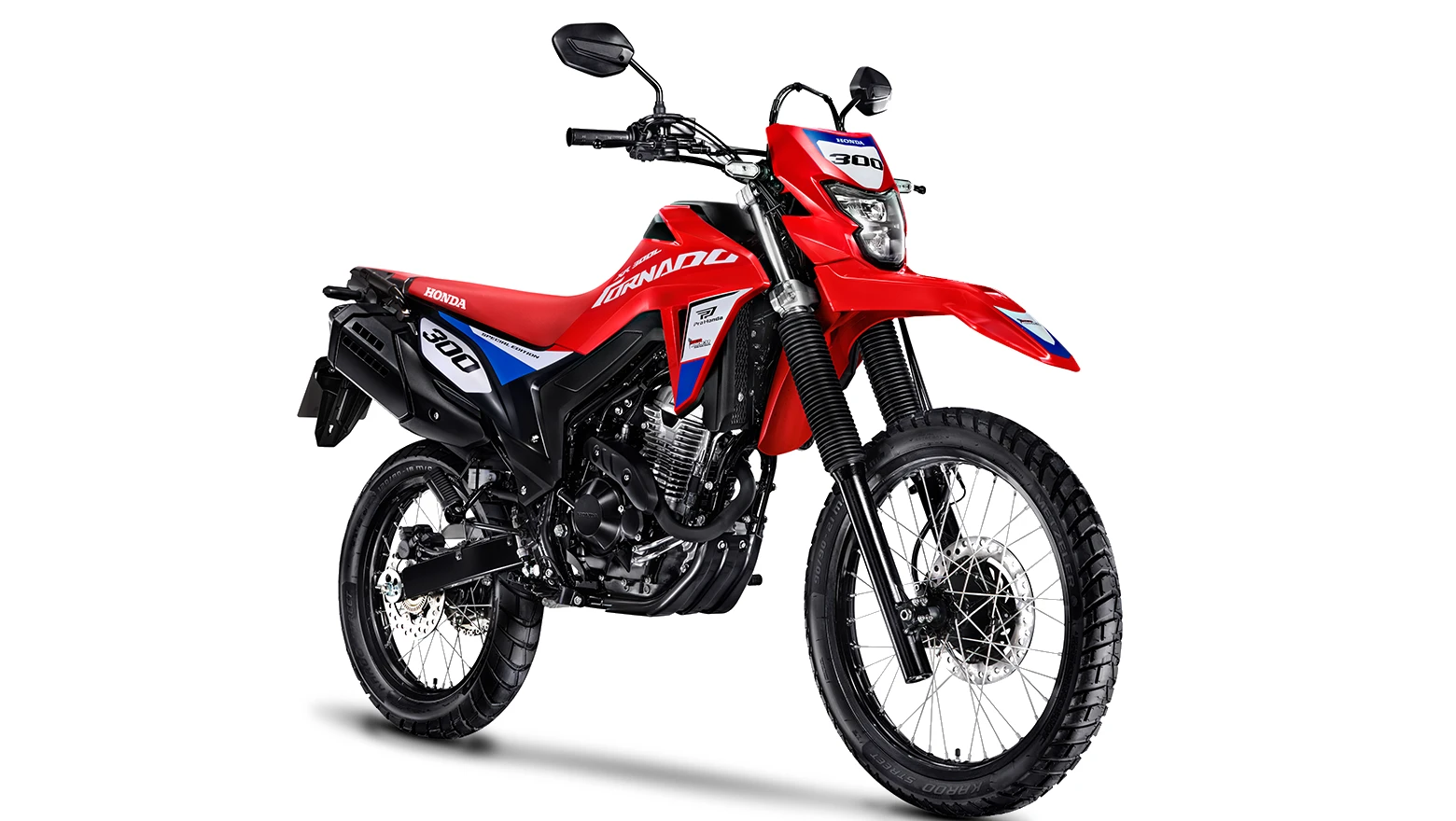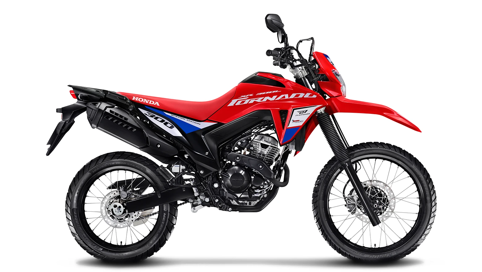 A Honda XR300L Tornado Special Edition carrega o DNA das pistas e do off-road. Com grafismos exclusivos e identidade visual marcante, o modelo reforça seu espírito competitivo e aventureiro em qualquer cenário.