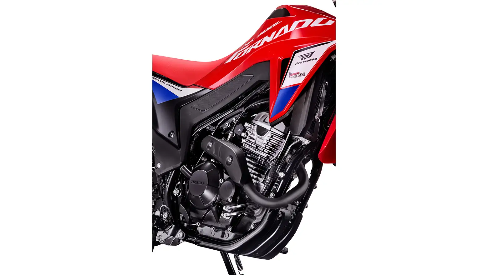 Inspirada na linha CRF, a Tornado Special Edition se destaca pelas cores vibrantes e acabamentos funcionais. Cada detalhe foi pensado para transmitir esportividade, resistência e atitude.